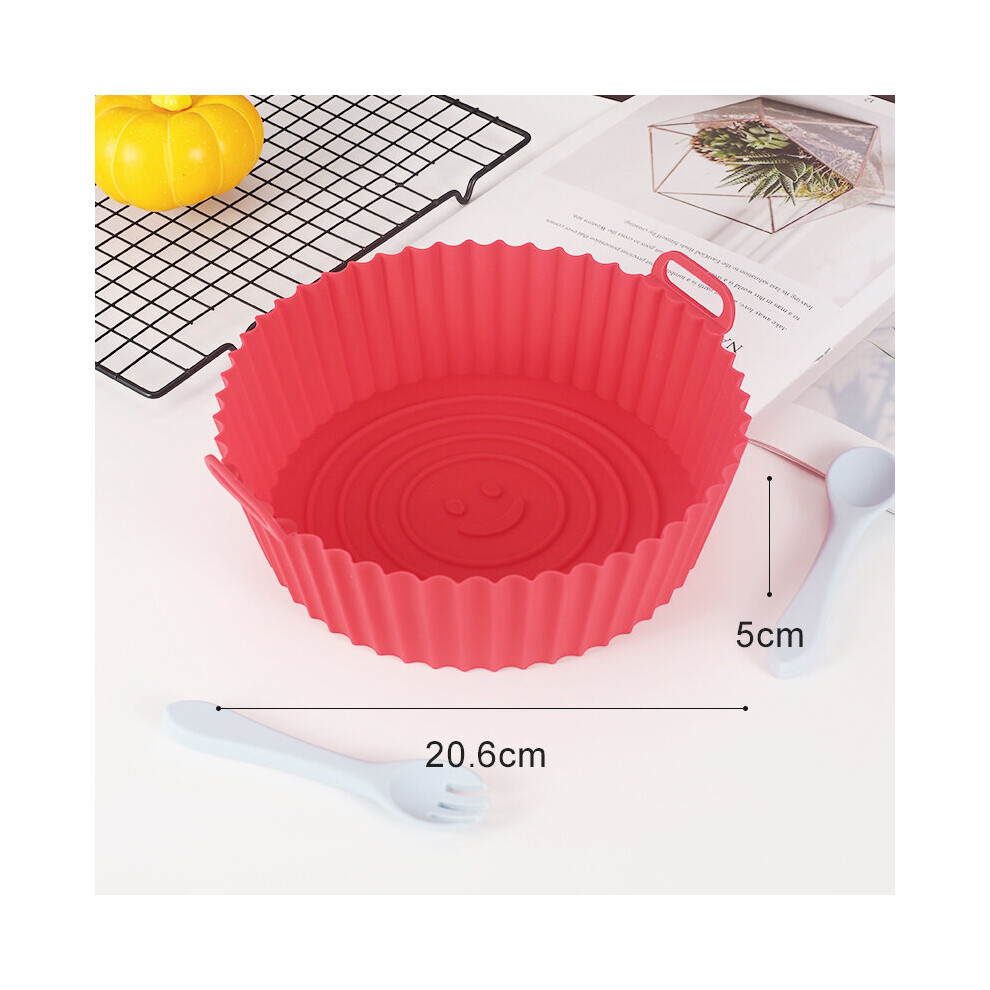 (Red small) Air Fryer Silicone Basket Reusable Round Air Fryer Bowl Grill Pizza Oven Baking Trays Pan Mats For Home Kitchen Baking Mold