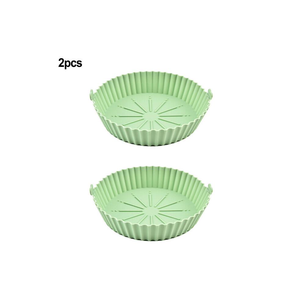 (Small Green) Air Fryer Reusable Pot Silicone Easy To Clean Oven Baking Tray Ninja Round Liner Pizza Plate Grill Pan Mat Air Fryer Accessories