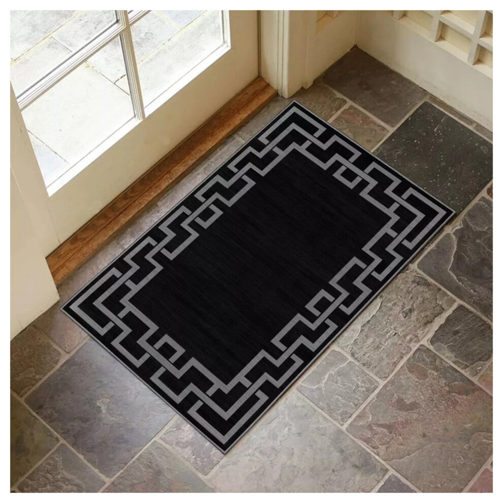 (40 x 60 cm (1ft 3" x 2ft)- Small Door Mat/Bath Mat) Printed Black Rugs Living Room Runner Carpet Mats