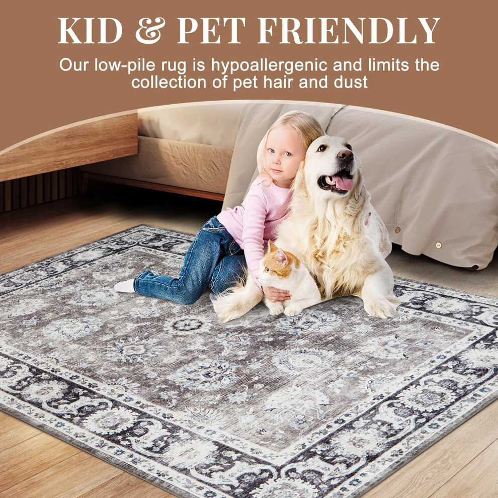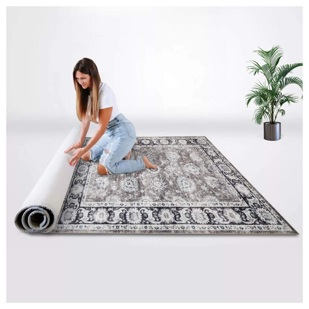 (40 x 60 cm (1ft 3" x 2ft)- Small Door Mat/Bath Mat) Traditional Rugs Grey Carpet Mat Living Room Bedroom Area Indoor Outdoor