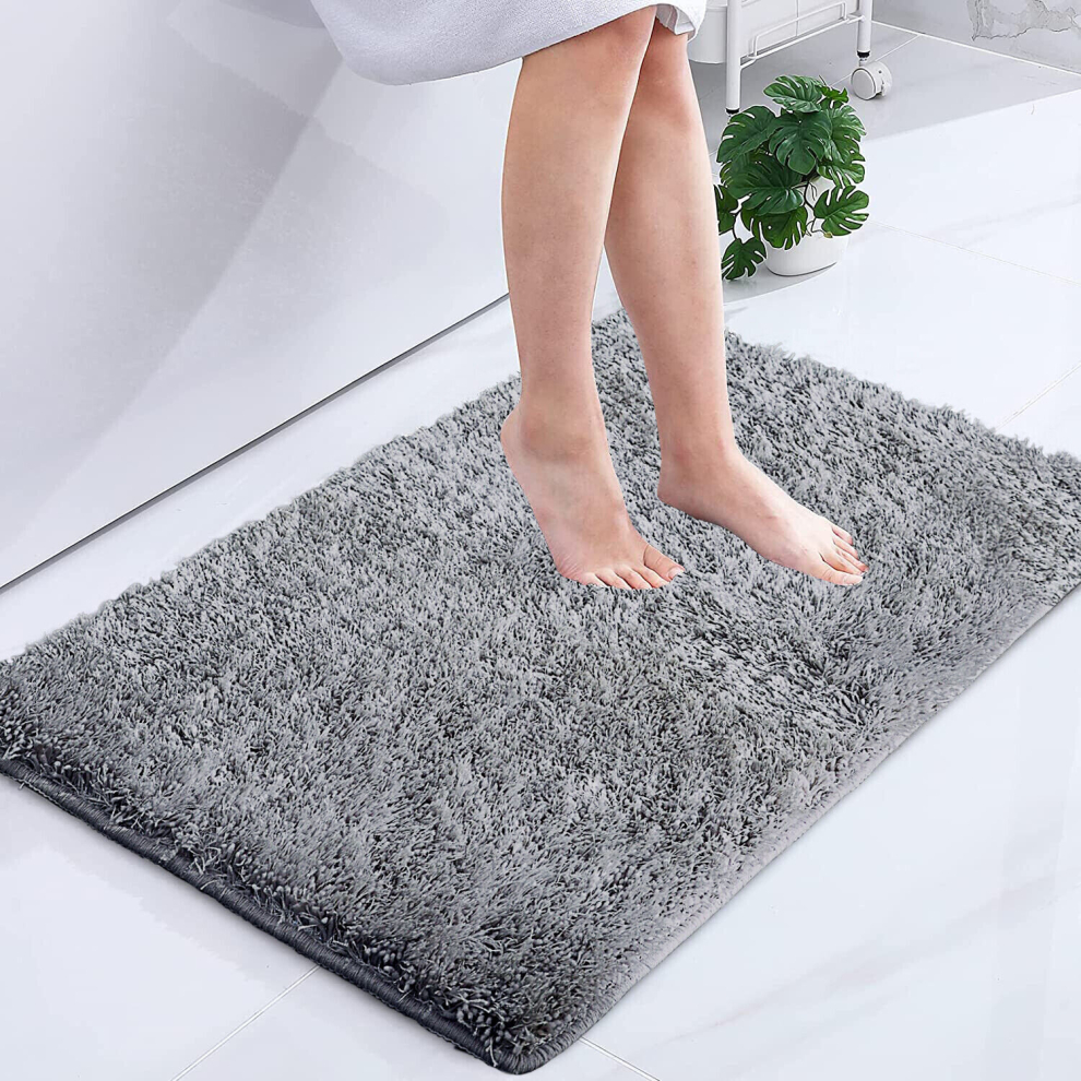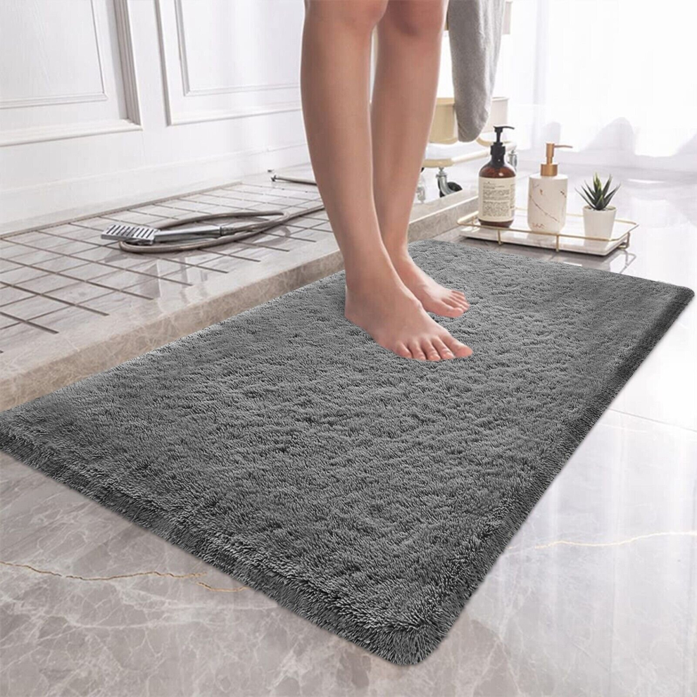 (50x80 cm- Small Bath Mat, Grey) Non Slip Bath Mats Soft Shaggy Bathroom Shower Rug