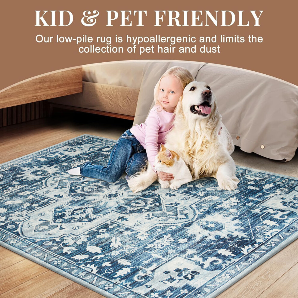 (40 x 60 cm (1 ft 3 in x 1 ft 9 in)- Small Door/Bath Mat Rug, Cashmere Tranquil Blue Rug) Non-Slip Living Room Rugs Traditional Carpets Mats