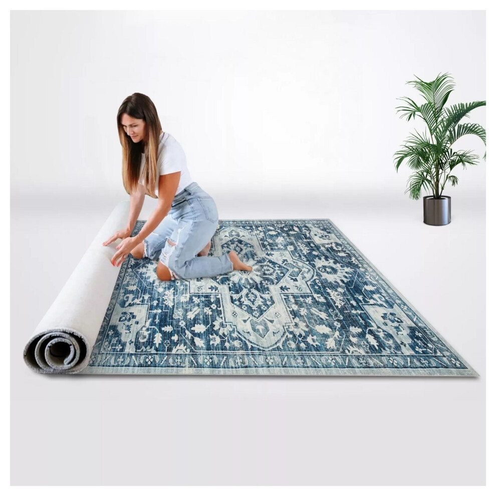 (40 X 60 cm (1 ft 3 in x 1 ft 9 in)- Small Doormats/Bath Mat) Blue Rugs Non Slip Traditional Carpet Rug Runner Mat