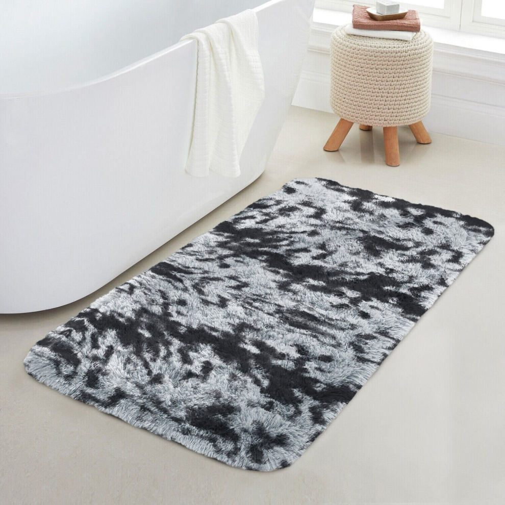(50cm x 80 cm (1 ft 6 in x 2 ft 6 in)- Small Shaggy Bath Mat/ Door Mat, Tye Dye Light Grey Shaggy) Non Slip Rugs Fluffy Shaggy Runner Rug Carpets Mat