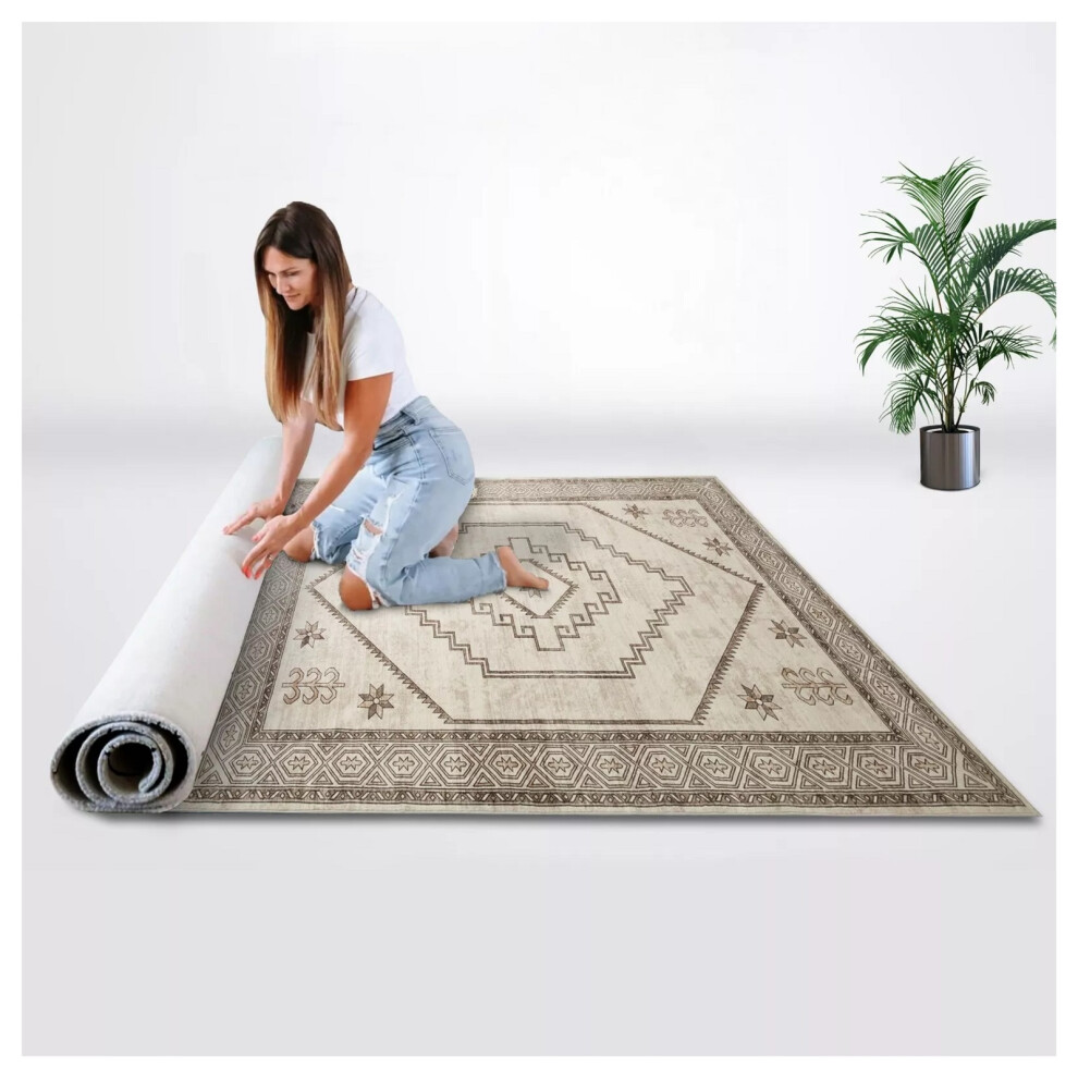 (40 x 60 cm (1 ft 3 in x 1 ft 9 in)- Small Door/Bath Mat Rug, Cashmere Timeless Beige Rust Rug) Non-Slip Living Room Rugs Traditional Carpets Mats