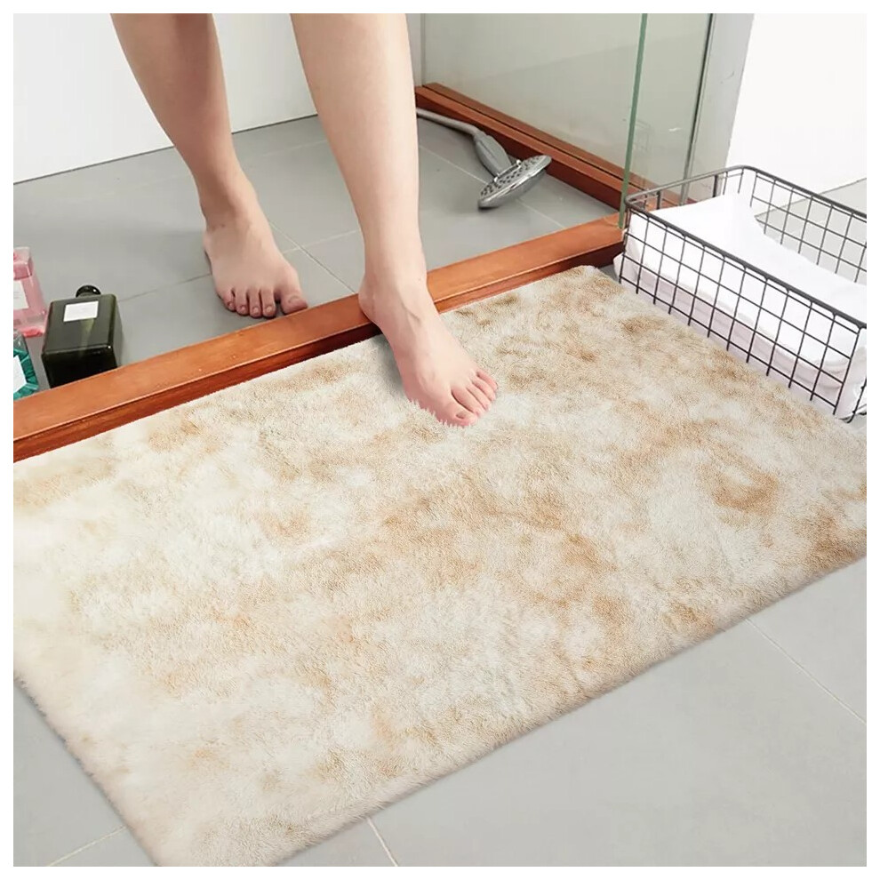 (Tye Dye Beige, 50 x 80 cm (1ft 6'' x 2ft 6'')-- (Small Bath Mat/Door Mat)) Non Slip Shaggy Rugs For Living Room Carpet Runner