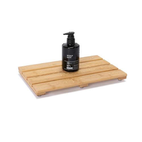 PELYN Bamboo Shower Bath Mat for Bathroom, Small Non-Slip Bamboo Wood Bathroom Mats for Inside or Outside (15.8 x 10.2 Inches)