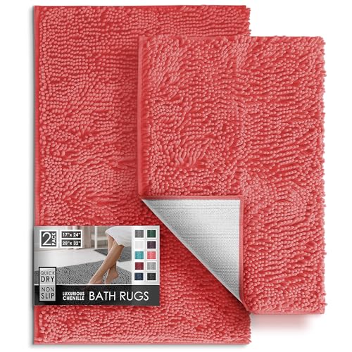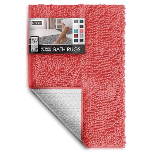 Hearth & Harbor Bathroom Rugs, Chenille Bath Mat - Machine Washable Bath Mats for Bathroom Non-Slip Backing Rubber, Quick Dry Bathroom Mat, Small - Medium Rose