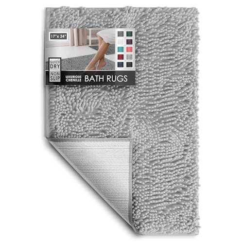 Hearth & Harbor Bathroom Rugs, Chenille Bath Mat - Machine Washable Bath Mats for Bathroom Non-Slip Backing Rubber, Quick Dry Bathroom Mat, Small Grey
