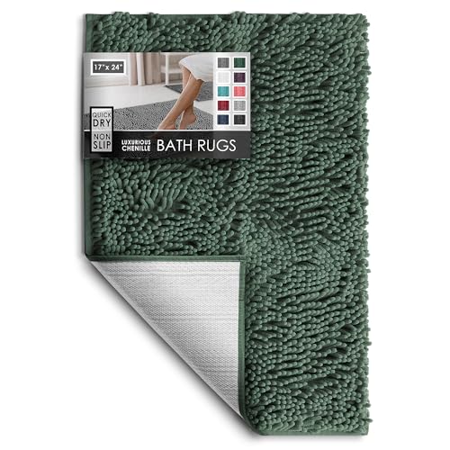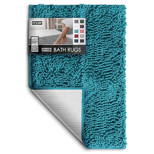 Hearth & Harbor Bathroom Rugs, Chenille Bath Mat - Machine Washable Bath Mats for Bathroom Non-Slip Backing Rubber, Quick Dry Bathroom Mat, Small Teal