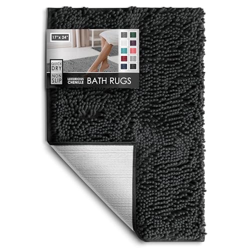 Hearth & Harbor Bathroom Rugs, Chenille Bath Mat - Machine Washable Bath Mats for Bathroom Non-Slip Backing Rubber, Quick Dry Bathroom Mat, Small - Medium Grey