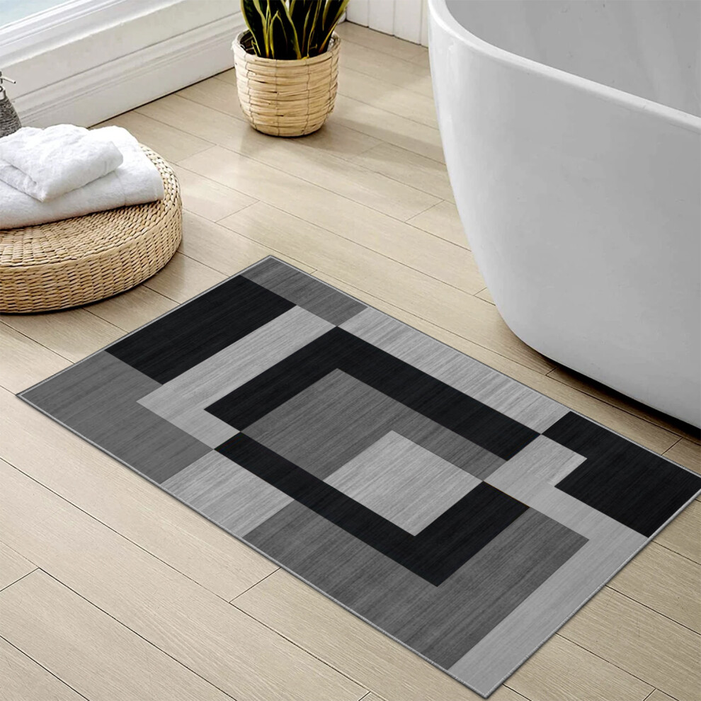 (40 x 60 cm- Small Door Mat/Small Bathroom Bath Mat) Living Room Black Rugs Carpets Printed Runner Mat