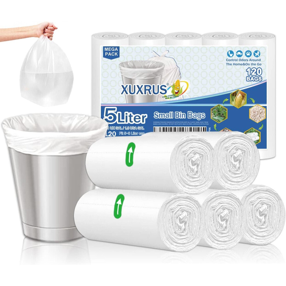 XUXRUS 5 Liter Small Trash Bin Bags Pedal Bin Liners Garbage Bags Wastebasket for Bathroom Kitchen,Office120 Count,White (Fits 5 6 7 8L Bins)