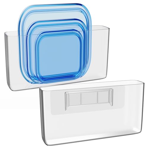 NiHome Acrylic Wall Mount Organizer 2-Pack, Slim Multi-Use Over Cabinet Storage Bins No-Drill Installation, Versatile Use for Kitchen, Bathroom, Office Perfect for Small Accessories (Clear)