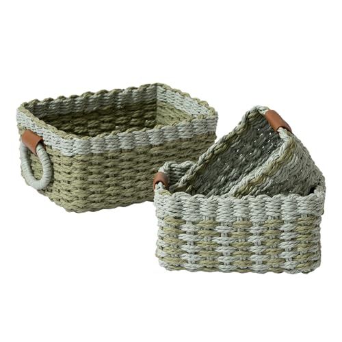 LA JOLIE MUSE Small Wicker Baskets for Organizing, Recycled Paper Rope Storage Basket Container Bins for Shelves Bathroom Living room, Organizer Set of 3 Sage and Light green