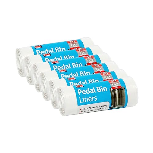 Kordis Strong Tie Handle Pedal Bin Liners - 6 x 30 Bags. 25L White Plastic Bin Bag Liners For Bedroom, Bathroom, Office, Mini Trash Can & Small Bins. 180 Unscented Garbage Bags (53 x 70cm)