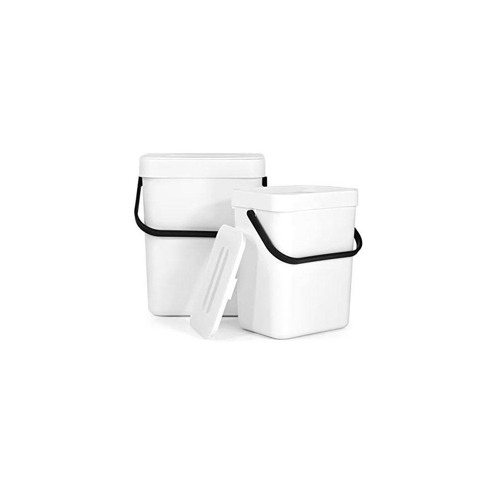 Spesh 2 Pcs (3L+5L) Food Waste Bins Hanging Trash Cans with Lid Small Food Waste Caddy Under Sink Bins for Kitchen, Bathroom, Office(White)