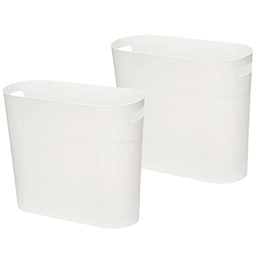 Caxmtu Small Bathroom Bin Plastic Bathroom Wastebasket 10 Litres Slim Garbage Container Bins with Handle for Home Kitchen Bathroom Bedroom Office, White, 2 Pack