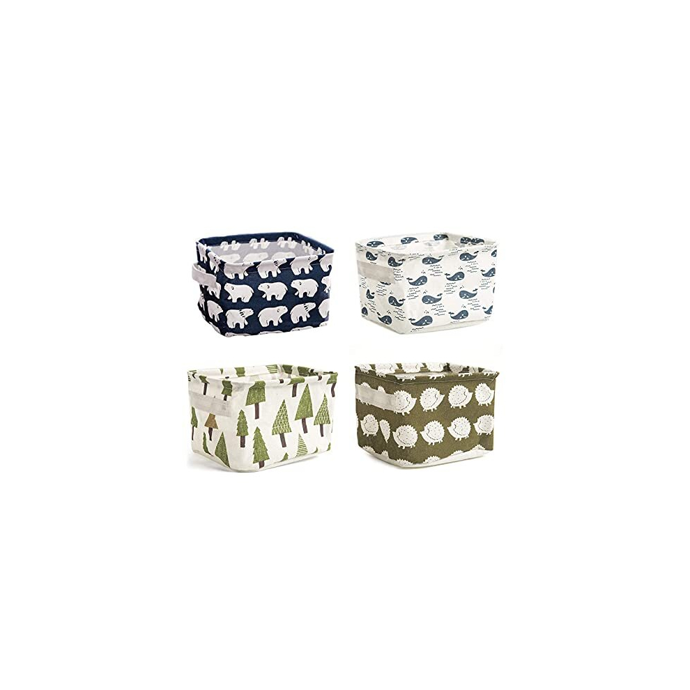 4 Pack Storage Baskets small,Foldable Mini Square Storage Bins Cotton Linen Fabric Storage Basket for Bathroom,Makeup,Books,Desktop Storage and