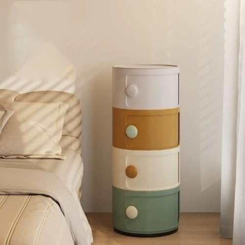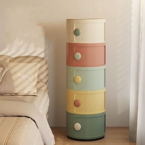 Koenqxoa Plastic Nightstand with Storage Small Bathroom Cabinet Narrow Round End Table for Study Living Room Colorful Side Table (Large)