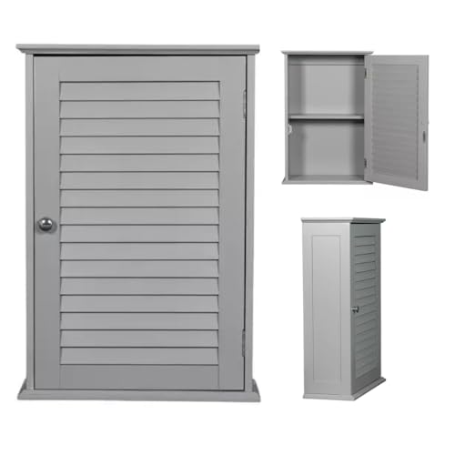 Top Home Solutions® Small Bathroom Cabinet with Single Shutter Door & Shelf 57x39x17 cm – Wall Mounted Bathroom Cabinet for Medicine, Toiletries - Slim Wooden Wall Cabinet for Kitchen & Bath (Grey)