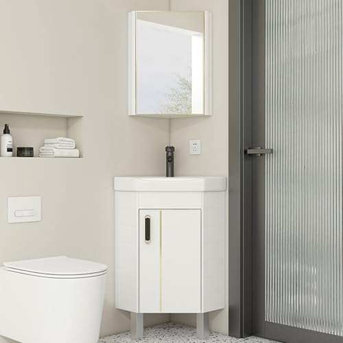 GUAWJRZDP Bathroom Sink, Corner Ceramic Sink, Corner Bathroom Vanity, Wall Mounted Bathroom Sink, Corner Sink with Mirror Cabinet, Modern Bathroom Storage Cabinet, for Small Space(White)
