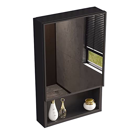 YASAT Small Bathroom Mirror Cabinet Wall Mount Medicine Cabinet Hanging Cabinet Bathroom Wall Mirror Cabinet 15.7 * 25.5 Inch Aluminum Alloy Mirror Cabinet (Color : Black)
