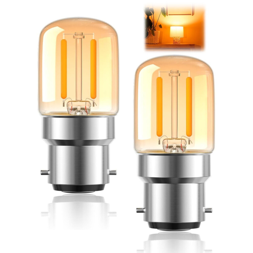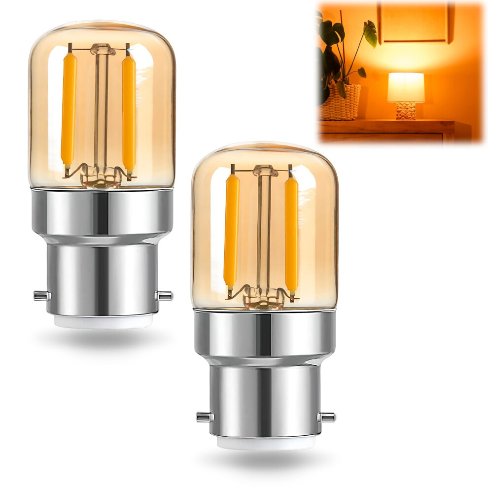 2Pcs B22 Pygmy Bayonet LED Light Bulbs, 1W Small Bayonet Bulb Cap BC Clear LED Low Watt Spiral Filament Decorative Bulb 2700K Warm White T28 220v for