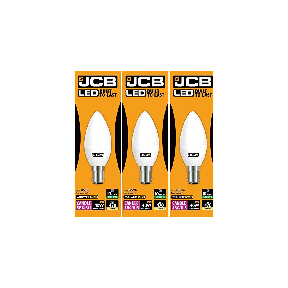 JCB 6w LED B15 Candle Bulbs Small Bayonet, 40w Incandescent Bulb Equivalent, 470lm, Warm White 3000k, Non Dimmable, LED Small Bayonet Bulb Candle