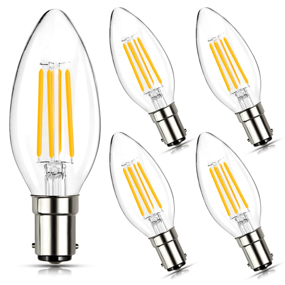 4 Watts B15 SBC Small Bayonet LED Light Bulb Clear Candle Warm White Dimmable, Pack of 5