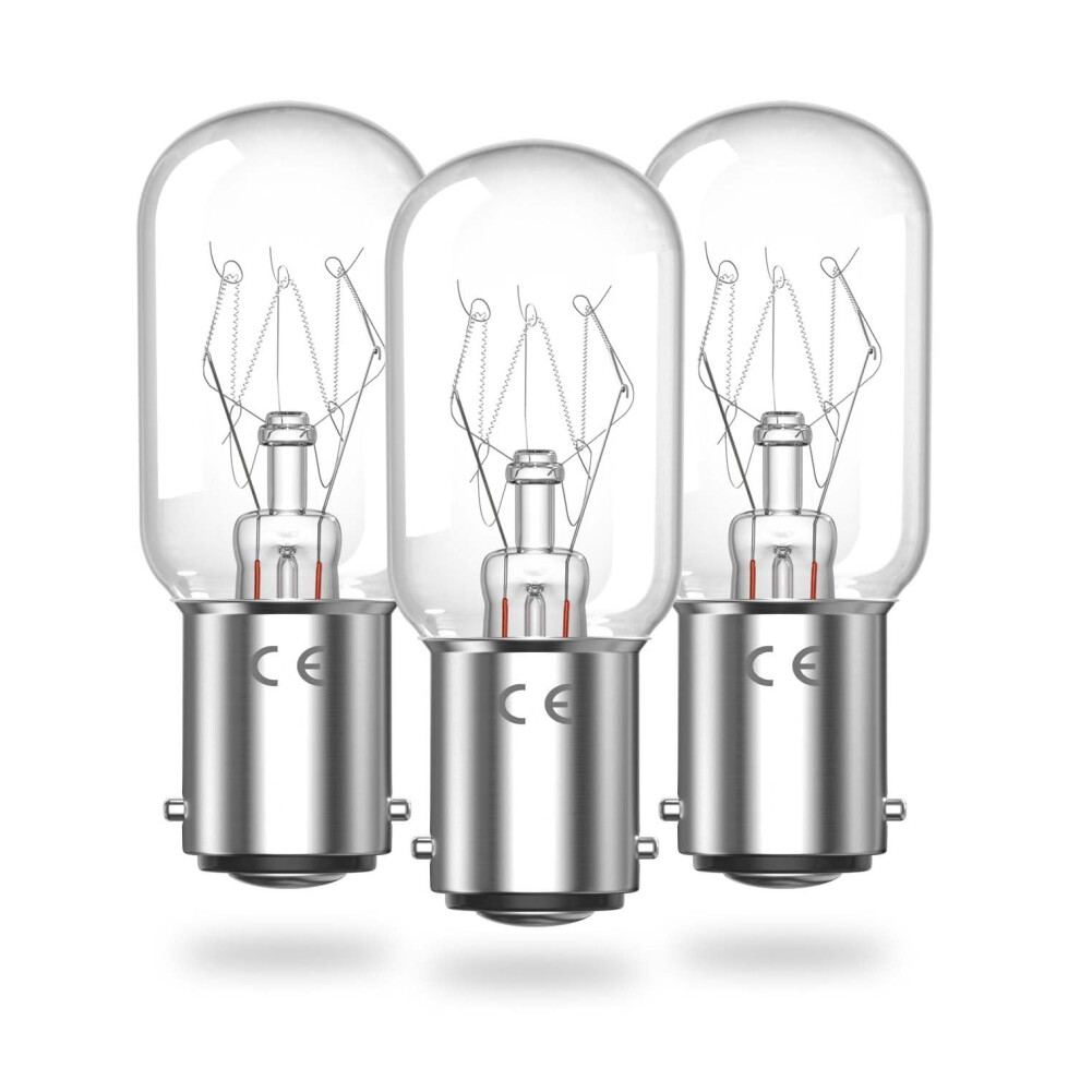 Bonlux BA15D Small Bayonet Light Bulb Pygmy Bulb15W Bayonet SBC B15 Bayonet Light Bulb T25 Appliance Bulbs for Oven >300C, Microwaves, Salt Lamp, Se