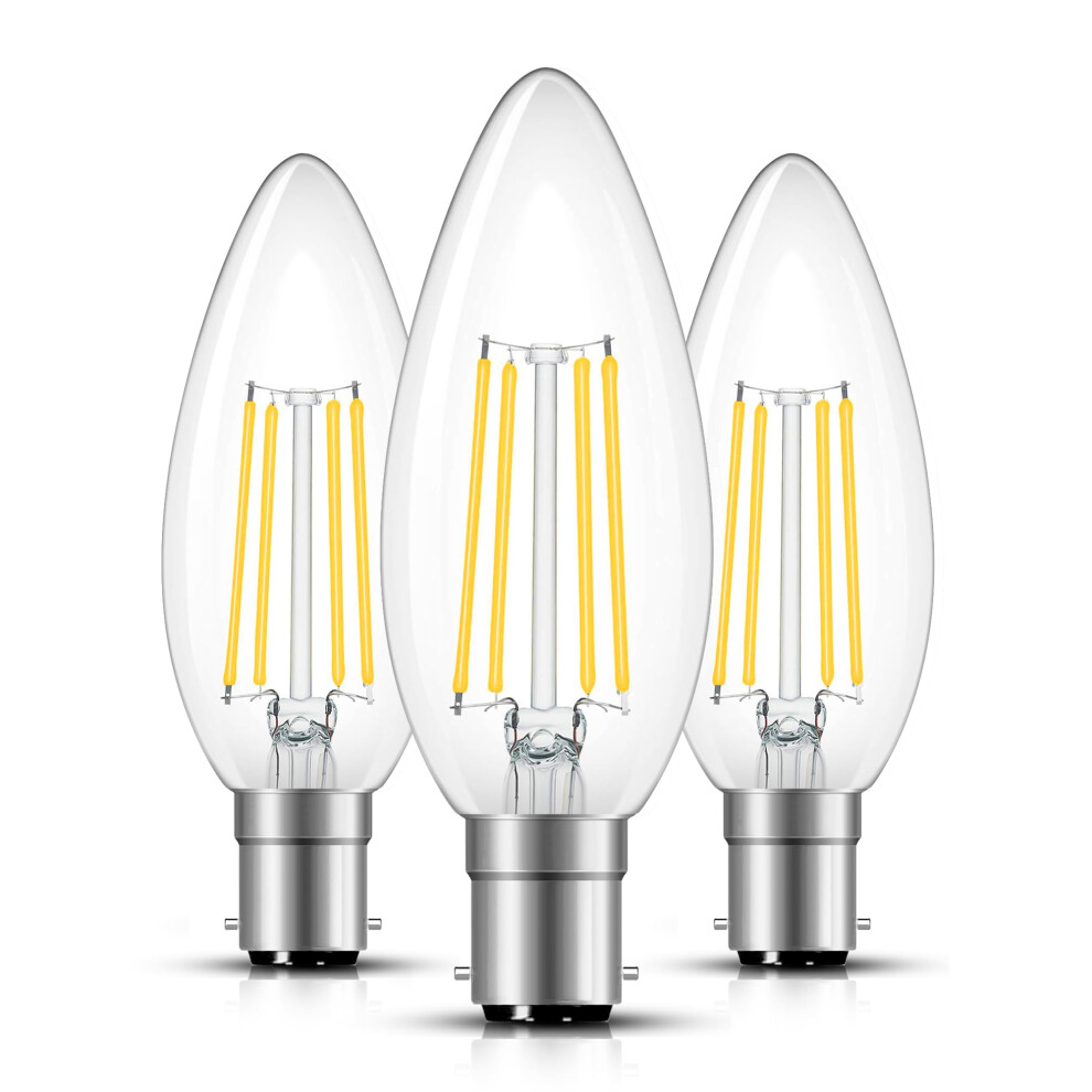 Small Bayonet Light Bulb, 4W B15 LED Filament Candle Bulb 40W Incandescent Bulbs Equivalent, 2700K Warm White, C35 B15 Bulbs for Chandelier, Pack of