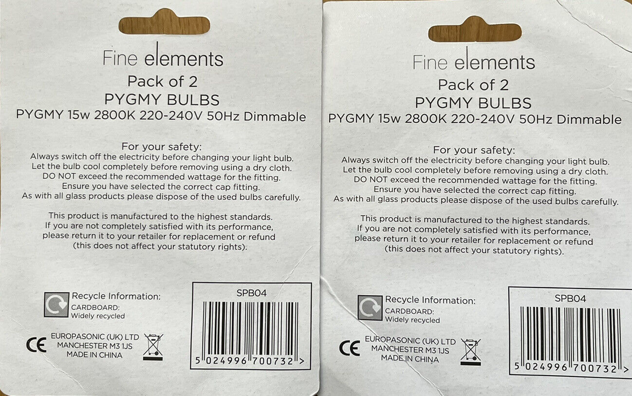Fine Elements Pygmy 15W SBC B15 Fridge Lamp Small Bayonet Bulb 2 Packs = 4 Bulbs