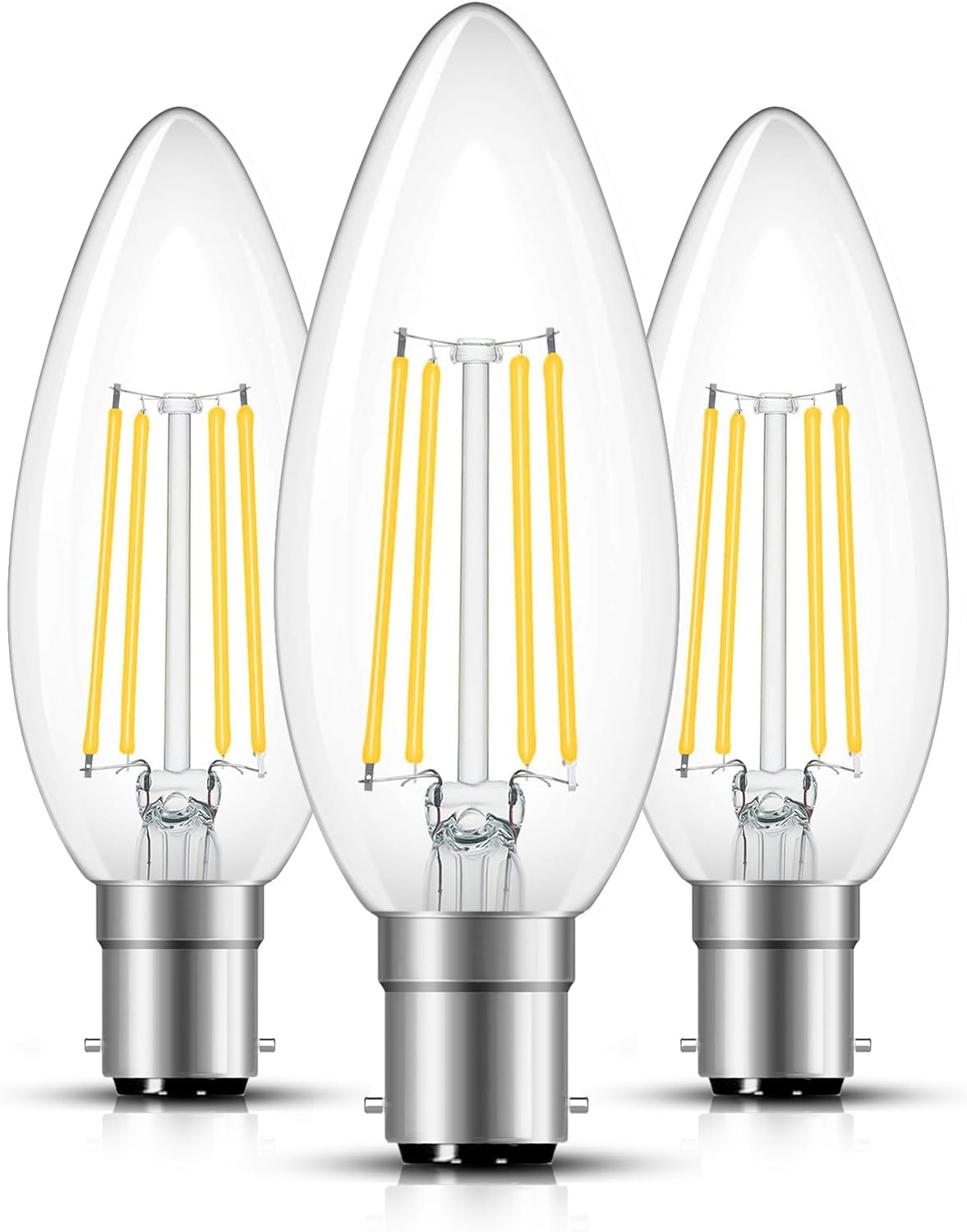 BRIMAX B15 LED Filament Candle Bulb, C35 4W Small Bayonet Light Bulb, C35 Clear Glass Bulb, AC220-240V, Equivalent to 40W, 2700K Soft Warm White