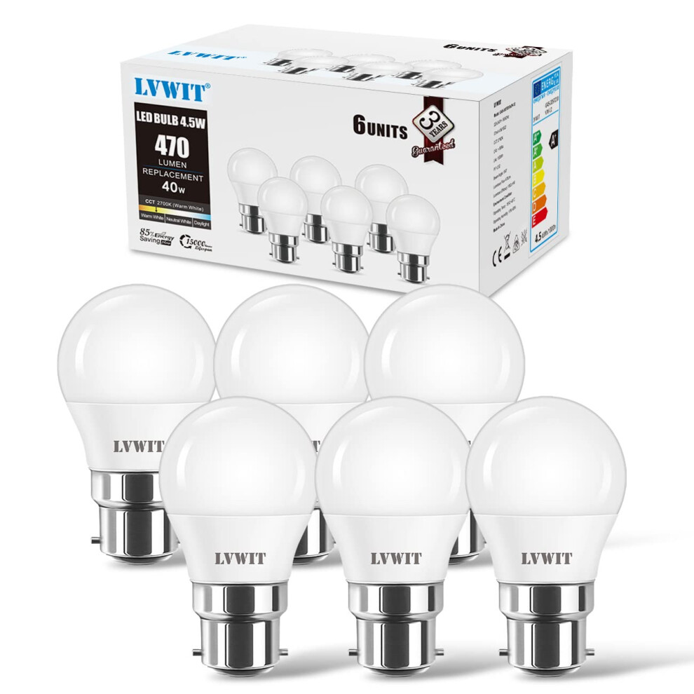 SES 4.5W Golfball B22 LED Light Bulbs,LVWIT Golf Ball Led Bulbs Bayonet 40W Equivalent, 470Lm,2700K Warm White Small Golf Ball Bayonet Bulb Energy Sa