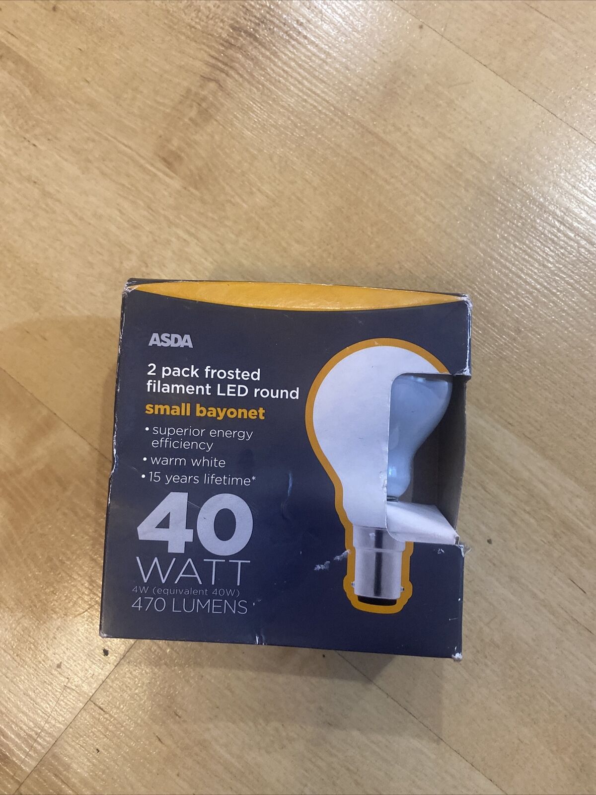 Asda 2 Pack Frosted Filament LED Round Small Bayonet Bulb 40W 470lumens