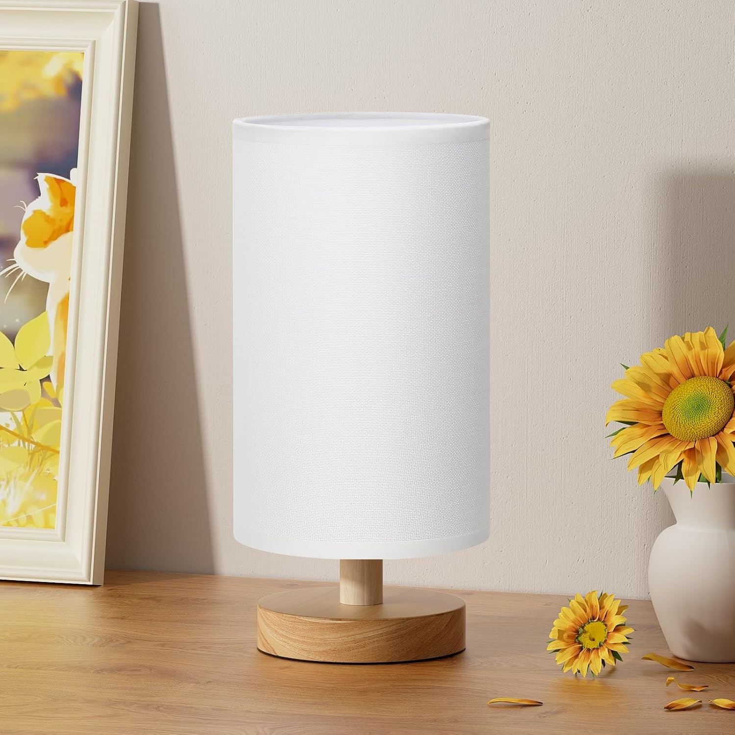 Jayencer Touch Control Table Lamp Set of 2, Dimmable Touch Control Nightstand Lamps,Small Table Lamp with Wood-Grain Base ? Beige Fabric Shade for Bed