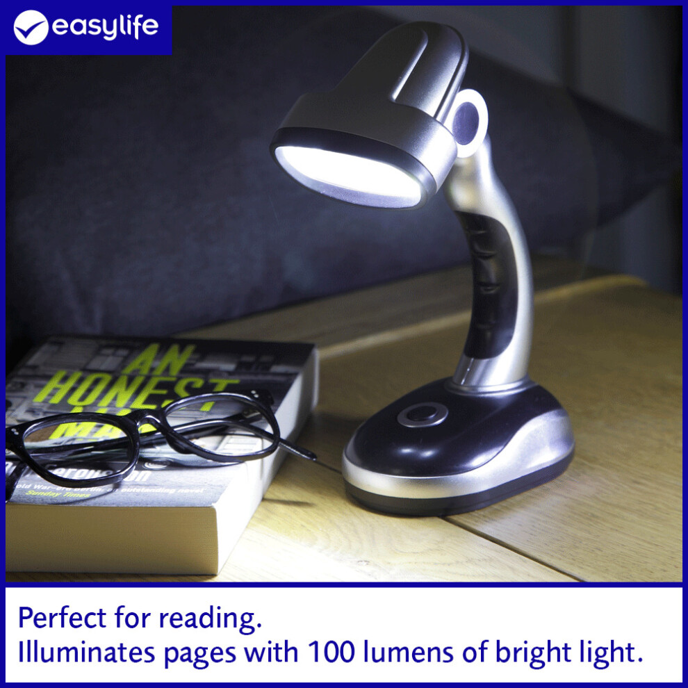 Easylife Desk Lamp with Tilting Head, 100 Lumens of White Light, Reading Light, Desk Light, Reading Lamp, Small Lamp, Bedside Light, Study Lamp, Bed