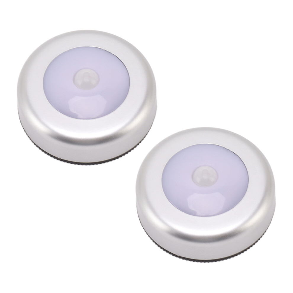 Motion Sensor Night Light Eye Protection Round Small LED Induction Lamp for Closet Drawer Bed Bottom 2pcs White Light