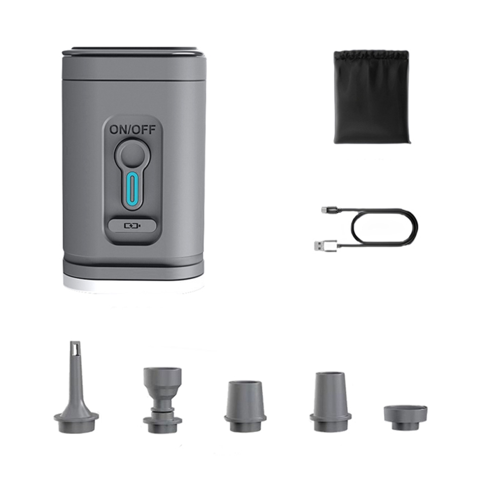 Portable Air Pump Rechargeable Air Pump Outdoor Small Dual-Purpose Pump Inflatable Bed Air Pump Camping Lamp Grey