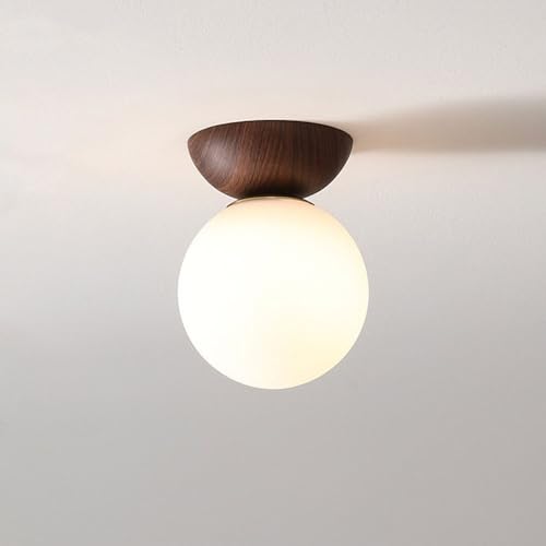 Globe Light White Glass Semi Flush Mount Lamp Small Chandelier Lighting Indoor, Nordic Close to Ceiling Lights for Hallway Bedroom Entryway/Walnut Color