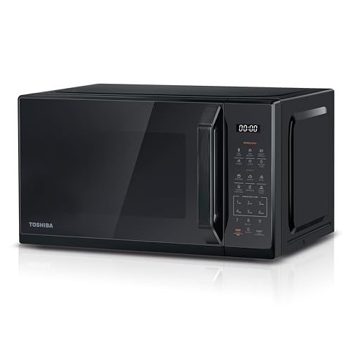 TOSHIBA Black Mirror Microwave 20Liter 800W Digital Solo Small Microwave With 11 Power Levels, One touch Express Cook with 6 Auto Menus, Defrost, Digital Display, Perfect for 9''pizza, MW3-EM20PF(MB)