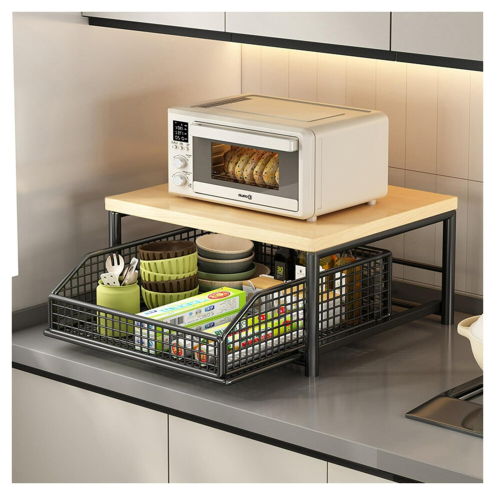 Hershii Small Appliance & Air Fryer Storage Rack Metal Microwave Oven Shelf Stand Kitchen Counter Organizer with a Drawer for Rice Cooker Seasoning Bottles Toaster Tableware - Black