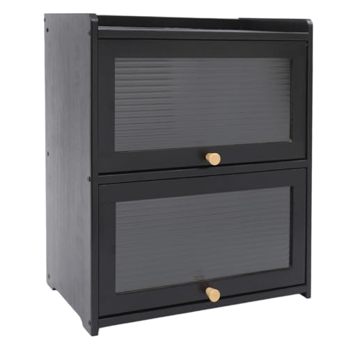 Dokiiovo 2 Tier Desktop Storage Cabinet with Acrylic Doors, Bamboo Countertop Storage Cabinet, Freestanding Small Kitchen Pantry Sideboard for Kitchens, Living Room, 42x25x50 cm (Black)