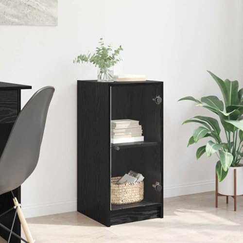 Qnhdfrt Small Sideboard Black Oak 29.5x34x76 cm Engineered Wood Storage Cabinet with Adjustable Door for Living Room Kitchen Corridor Bedroom