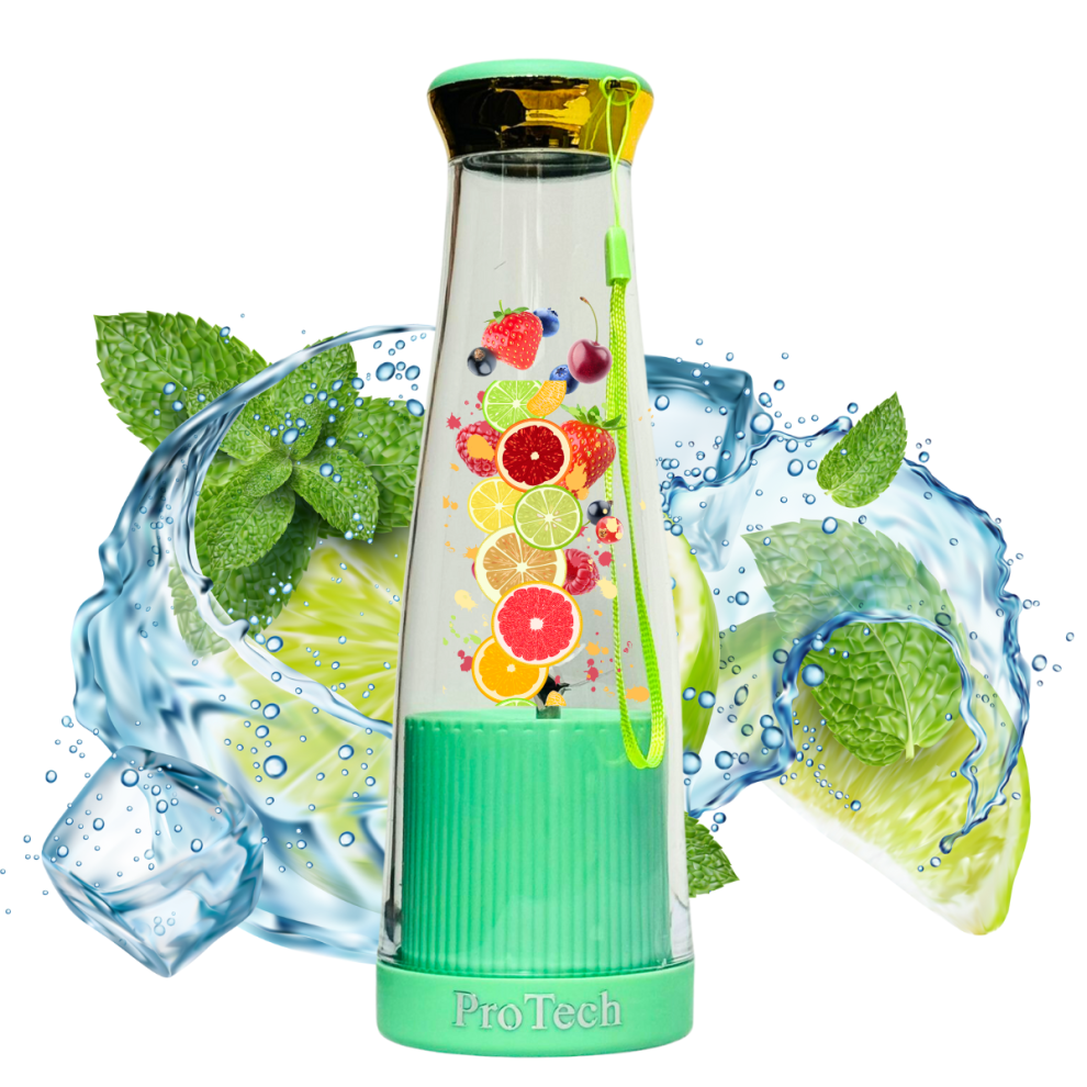 (Green) ProTech Portable Mini Electric Juicer, Smoothie Makers, 308ML Personal Small Blender Juicer, BPA Free, USB Rechargeable 6 Blades for Gym