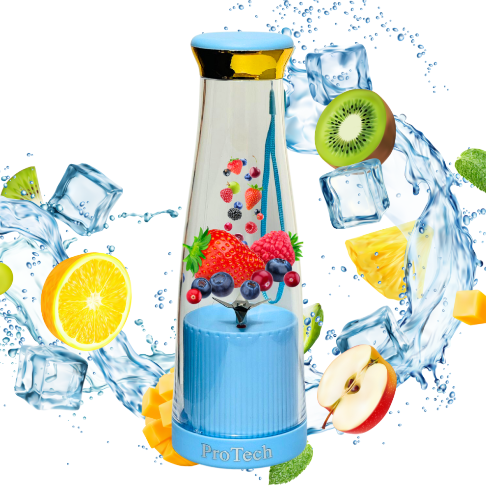 (Blue) ProTech Portable Mini Electric Juicer, Smoothie Makers, 308ML Personal Small Blender Juicer, BPA Free, USB Rechargeable 6 Blades for Gym