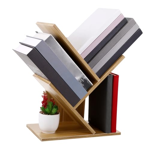 Veemoon Wooden Bookshelf Desk Shelf Decor Book Storage Rack Tree Bookcase Small Desktop Bookcase Estanteria