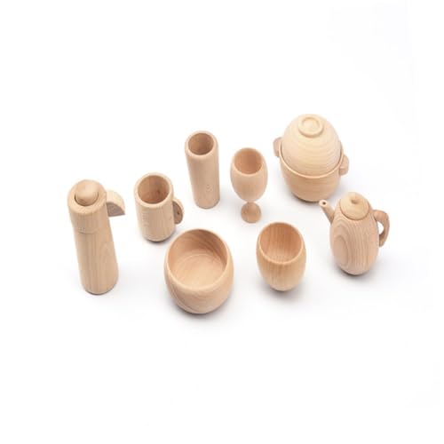 Gogogmee 2PCS Beech Wood Tableware for Safe No Paint Montessori Simulation Kitchen Cutlery Small Tea Bowls Educational Play House Accessories for Home Nursery