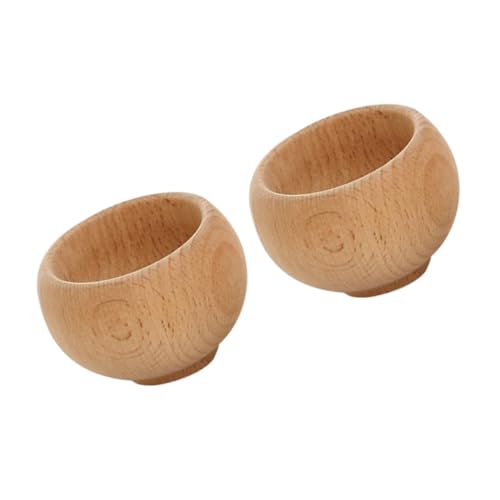 ibasenice 2PCS Beech Wood Tableware Safe No Paint Montessori Play House Kitchen Simulation Cutlery Small Tea Bowls for Nursery and Home Creative Play